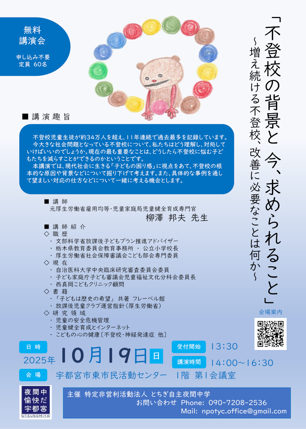 とちぎ自主夜間中学のパートナー(ボランティアスタッフ)研修として柳澤邦夫先生の講演会を開催しました。