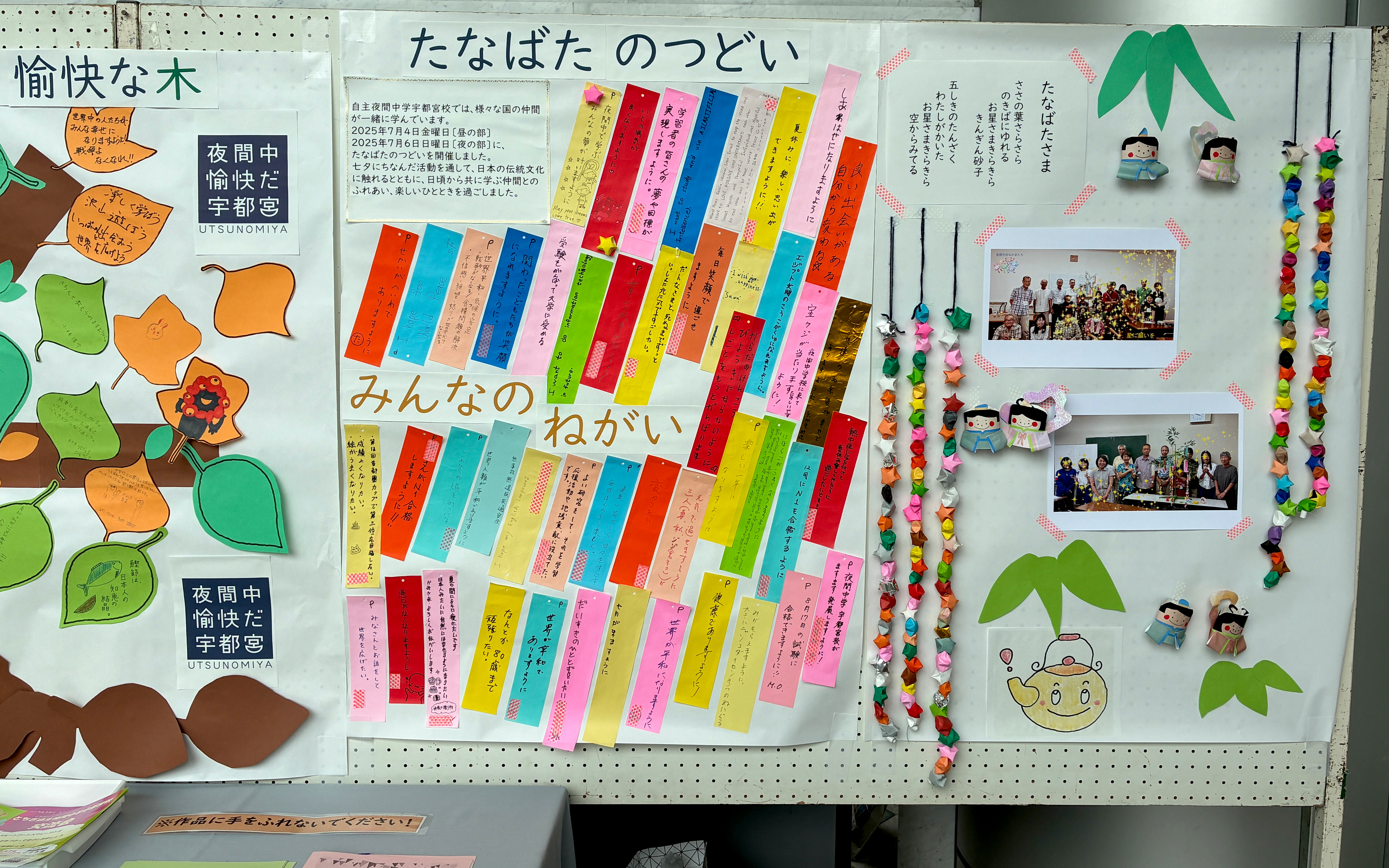 宇都宮校のなかまの紹介と七夕まつりの短冊の展示をしました。短冊にはみんなの願い・目標などが書かれています。
