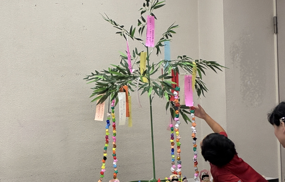 七夕の日を前に、昼の部では7月4日に、夜の部では7月6日に七夕飾りに願いを込めた短冊を飾りました。