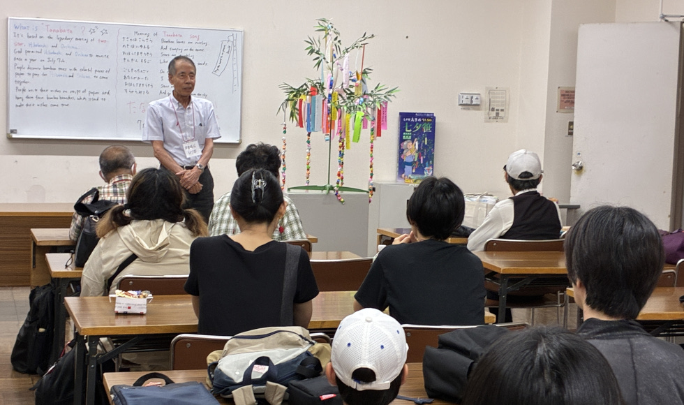 校長の川村さんから七夕のお話を聞きみんなで「たなばたさま」の歌を歌いました。